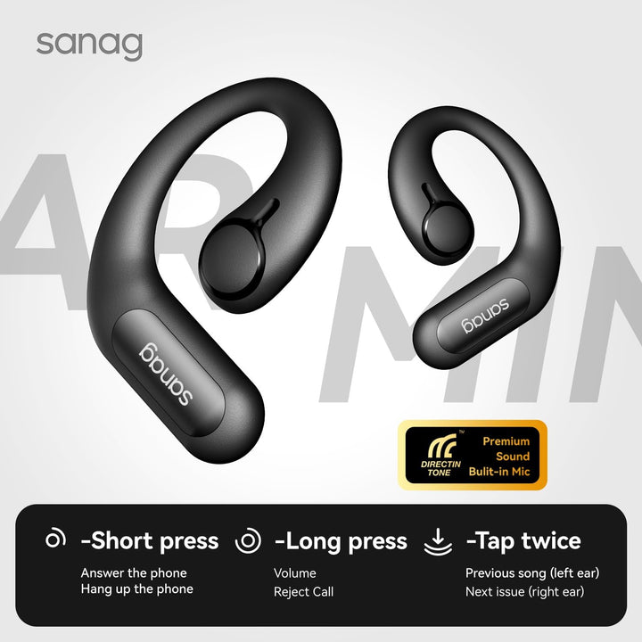 Sanag Open Ear Headphones, Wireless Earbuds with 48H Playtime, Bionic Cocnlea Design, Stable & Fit, Headset with Built-in Mic,Touch Control for Sport